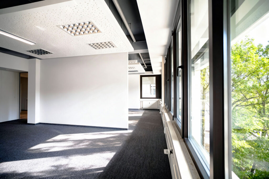 Die Büroflächen lassen sich individuell anpassen – von offenen Arbeitsbereichen bis hin zu abgeschlossenen Besprechungs- und Behandlungsräumen. Die modulare Raumplanung ermöglicht maßgeschneiderte Lösungen für jede Unternehmensform.
