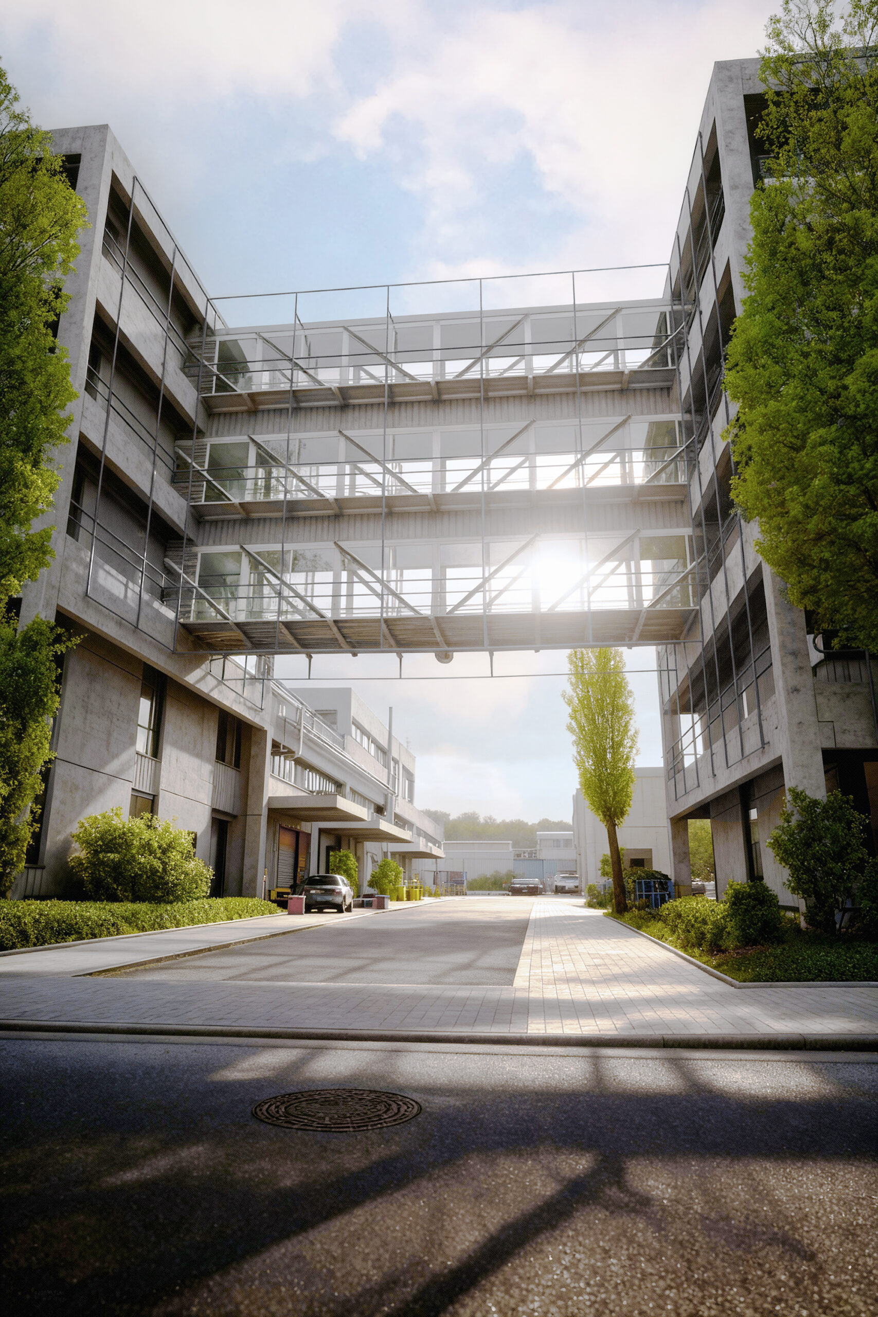 Die Gebäude sind mit moderner Haustechnik, energieeffizienten Systemen und einer zeitgemäßen Netzwerkinfrastruktur ausgestattet. Damit wird ein professioneller und zuverlässiger Arbeitsalltag sichergestellt.